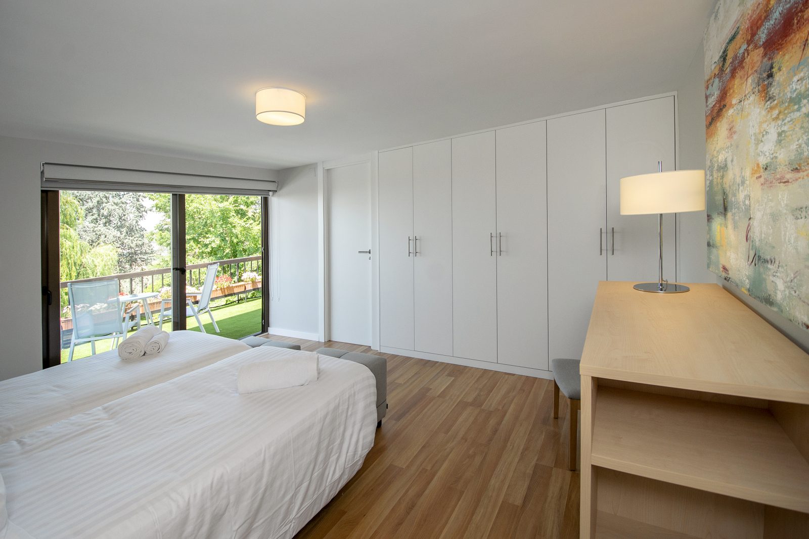 The seven spacious and warm bedrooms, each with its own bathroom (five en-suite bathrooms) and three of them suites on the upper floor with private outdoor terrace, have been renovated with a much more contemporary design. One of them, on the fully accessible ground floor, is a perfectly adapted bedroom and bathroom.